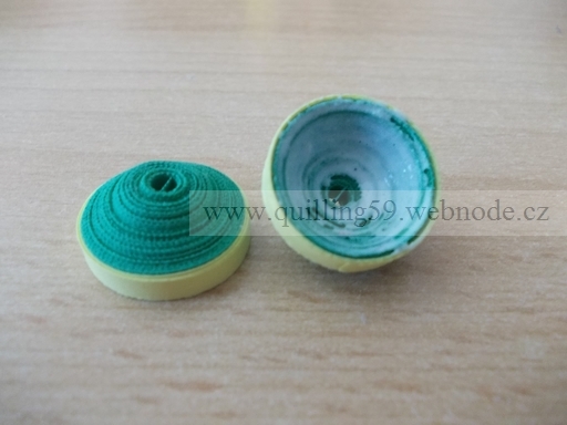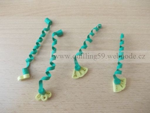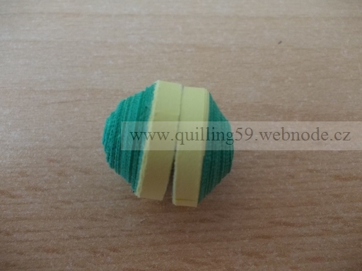 - 8 zelených proužků + 1 žlutý slepit a namotat do pevného kolečka (vytvořit 2x)