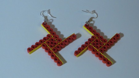 - na vytvoření tvaru použijeme čtyři proužky stejné barvy (pro jednu naušnici)
