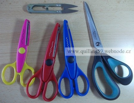 U quillingu se vám hodí hned několik druhů nůžek: klasické, ozdobné, nebo cvakačky (pro tvorbu pampelišek...).